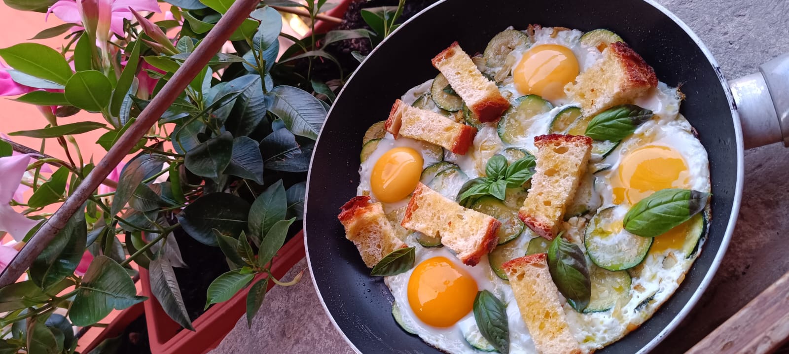 creando delicatamente dei solchi tra le zucchine perché gli albumi si cuociano bene.