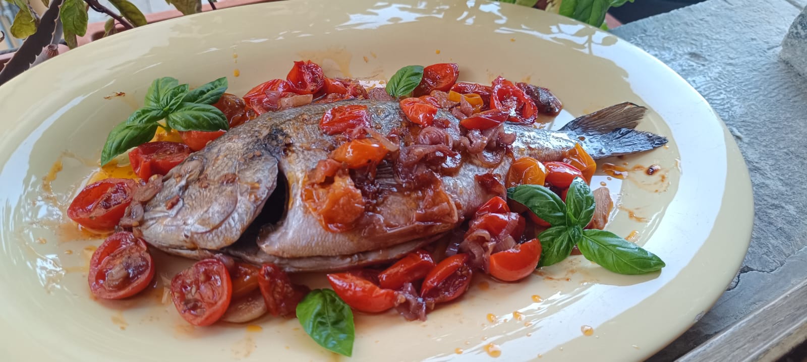 | – due orate grandi o 4 orate piccole – una cipolla e uno scalogno – uno spicchio d’aglio – circa 30 pomodorini – mezzo bicchiere di vino bianco – mezzo bicchiere d’acqua – olio evo, sale, pepe (o peperoncino) |