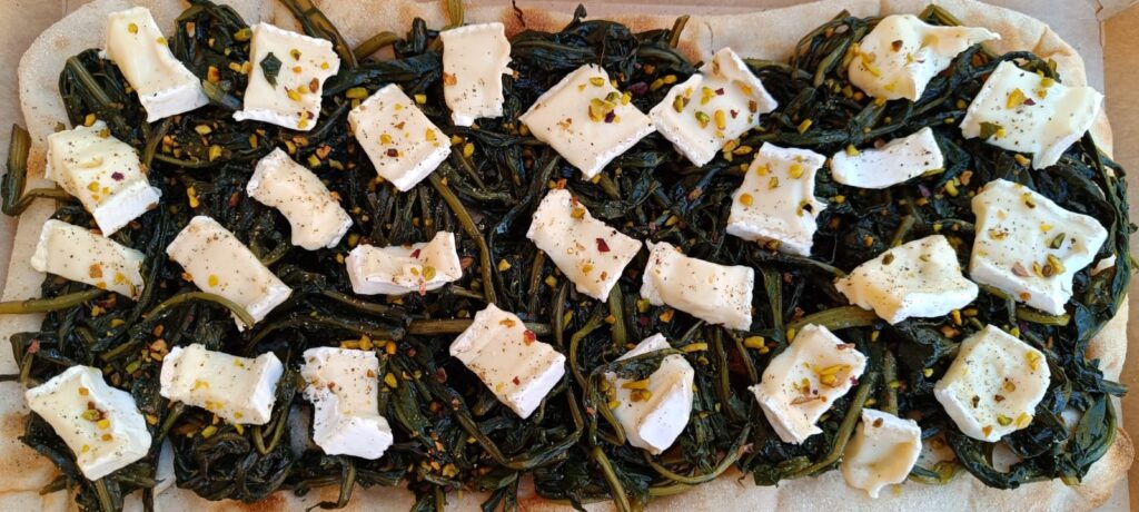 Oggi prepariamo la pinsa con la cicoria e con l’aggiunta di qualche formaggio.